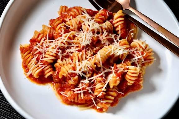 Few things are better than Sunday dinner at the Riverside, RI, home of gifted daughter Lesley R, and her brilliant husband, Massimo R., distinguished Professor and author. Lesley has numerous talents and skills (she has an important job as a communications director}. She is an excellent cook–?her pasta dishes are unsurpassed. Last night, Lesley made a lush dish of fusilli in a tomato and sausage sauce. The tomato sauce was made by Lesley in Prince Edward Island (location of F & R summer family home) in early September when local tomatoes were at their best. Wisely, Lesley froze some jars of the good stuff and brought them back to Rhody. The happy family drank a tasty Beaujolais Nouveau with the wondrous fusilli pasta showered with freshly grated parmigiano. BSK recalled the days when the wine was inexpensive. Alas, no more. On the drive back to HG/BSK’s Central Falls, RI, loft, HG remembered the funny New Yorker cartoon: Penne says on telephone “Hey, Fusilli,you crazy bastard, how are you doing?”