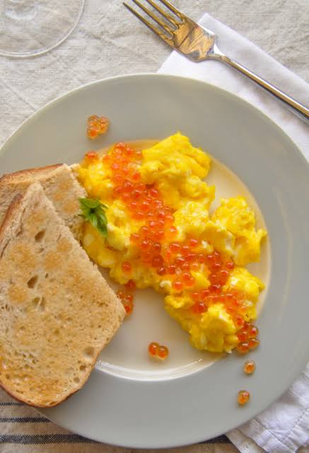 BSK explored the fridge and discovered a winner—Wild Alaskan Salmon Roe (better known as “red caviar”). There was a small amount left over from Christmas Eve smoked fish extravaganza. Zabar’s, Russ & Daughters (both New York Jewish appetizing store stalwarts) deliver this wonderful product. Priced at $37 a half pound, it is an affordable treat. Gifted daughter Lesley R. tops her beautiful little crepes with the caviar and adds a squeeze of creme fraiche for a sublime taste. BSK treated HG to a lush supper last night—the caviar topped softly scrambled eggs with a yogurt side. HG drank steely cold white wine and was a very joyous old guy.