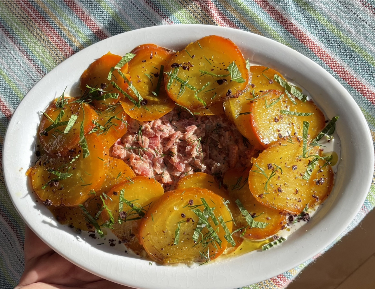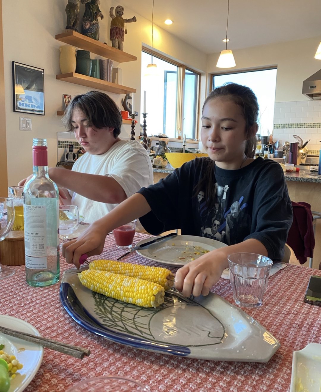 Big weather changes on Prince Edward Island, the site of the Freeman/Riva oceanfront home (panoramic sea views and picturesque sunsets). The sea is covered with whitecaps. There’s a powerful north wind. Br-r-r! Comfy in warm clothes, HG/BSK and family (gifted daughter Lesley R. and husband, Massimo R.; visiting from Tokyo son Jeremy and his son, Haru, and daughter, Teru enjoyed a robust meal that chased the chills away). Exquisite Maiko, a sensational chef, was in Tokyo supervising Freeman Shokudo, the busy Maiko/Jeremy izakaya. The meal started with super fresh steamer clams —they were dipped in pungent clam broth and melted butter mixed with a few drops of fiery Tabasco. Next dish was a creative and yummy yellow beet salad made by Jeremy (very inventive and satisfying.). Comfort food followed—warming bowls of orzo and corn kernels. Finale was a selection of cheeses, good bread and red wine. Sweet tooth folks finished the feasting with ice cream. Hot or cold, life is delightful on PEI.