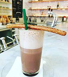 Perpetually hungry eight-year-old HG enjoyed many afternoon snacks: the first snack, after returning from elementary school, was a slice of pumpernickel bread topped with chicken fat, sliced onion and kosher salt . The late afternoon snack was a salted pretzel (twisted or baton) with a chocolate egg cream. An egg cream is a bit like an ice cream soda (without the ice cream) with a hint of milkshake. An endangered species, you can drink one at the Russ & Daughters Cafe on New York’s Lower East Side. (yes, there are a few “candy stores” that serve it.) HG is the national egg cream authority The key to a proper egg cream (contains neither an egg or cream) is frozen milk. HG’s recipe has appeared in The New York Times and The Jewish Encyclopedia. Give the recipe a try—and enjoy!!